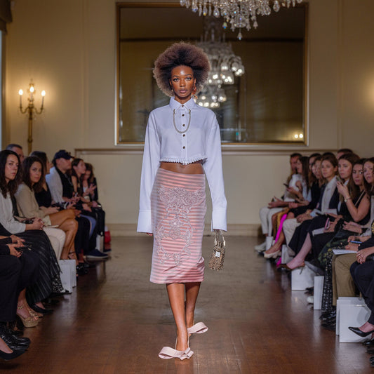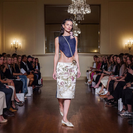 satin & denim embroidered skirt
