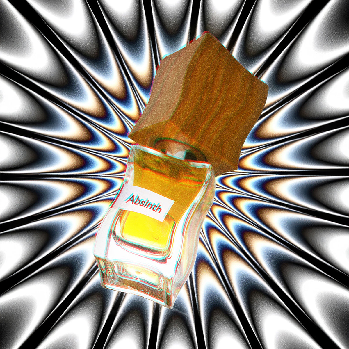 Absinth aims to evoke degrees of hysteria and irresponsible behavior. A dedication to controversial absinth, forbidden because of a component called thujone, a ketone that contains THC. It has an aromatic green odor and known to stimulate serotonin. Absinth is a perfume inspired by escapism towards happiness and careless snickering laughs, a moment of delirium that makes one forget about the troubles and dive into a luxurious type of madness.