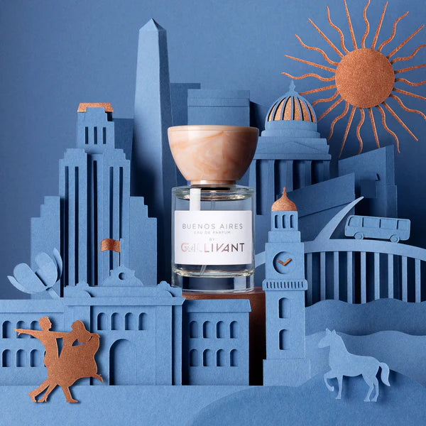 “I vividly remember watching Magenta de Vine on the BBC Rough Guide to Buenos Aires in the summer of 1990 and deciding this was a place I wanted to go. Fast forward a year to the summer of 1991, and still a teenager, I flew (alone!) to Argentina. I have such a strong memory of arriving at Ezeiza Airport and being hit by the smell of leather and that cologne that the Spanish and Latin Americans put through their hair. That was the start of a life-long love affair with the city, and its residents, called porteños. I’d seen the musical Evita as a child – so some of the panache, drama and glamour of the place had marked my younger self. Buenos Aires promised adventure: the glamour of slicked-back black hair and dark glasses, dinners at midnight and discotecas. Fur coats, horseback bravado, intellectuals and psychotherapists. Lazy mornings in Parisian style cafés. Grand boulevards. The smell of asado smoke permeating the city. And of course, dulce de leche! The vanilla/almond-like smell of it being made, wafts of it coming from workshops in the local confitería! And my favorite: alfajores – the best biscuit you’ve never heard of! Isn't fragrance memory amazing? The places it takes you back to .... So this is a love letter to Buenos Aires, its passions, the memories it’s given me and the warm embrace of its beautiful people.”